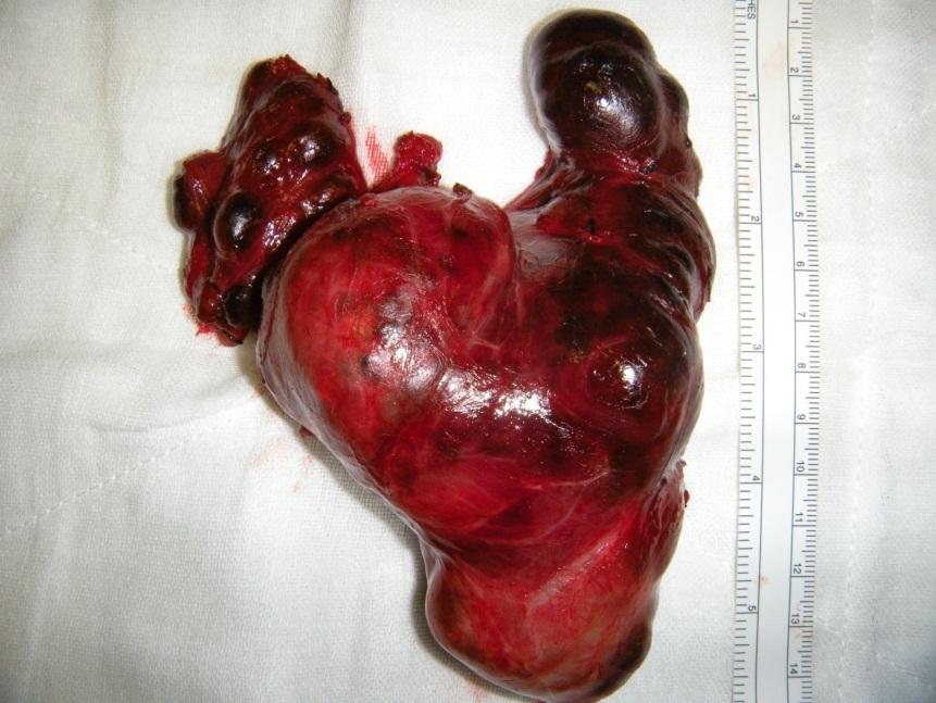 Figure 1: A large 15 cm multinodular goitre removed from a patient. This had no cancer in it but caused swallowing difficulties