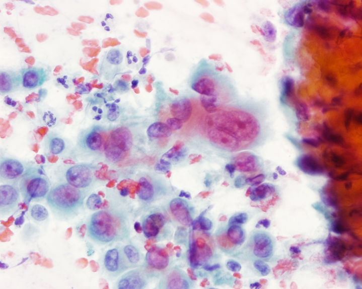 Figure 3: Cells taken from a nodule are examined under a microscope. This is called cytology and gives a quick and accurate diagnosis
