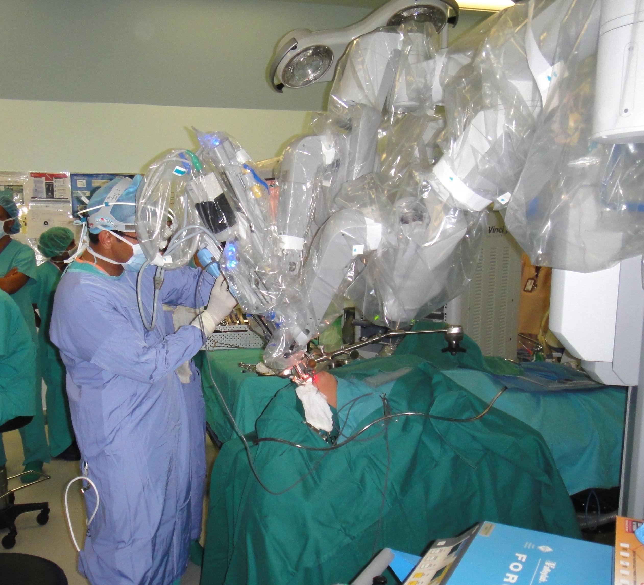 Figure 6: Robotic thyroidectomy using the da Vinci S system